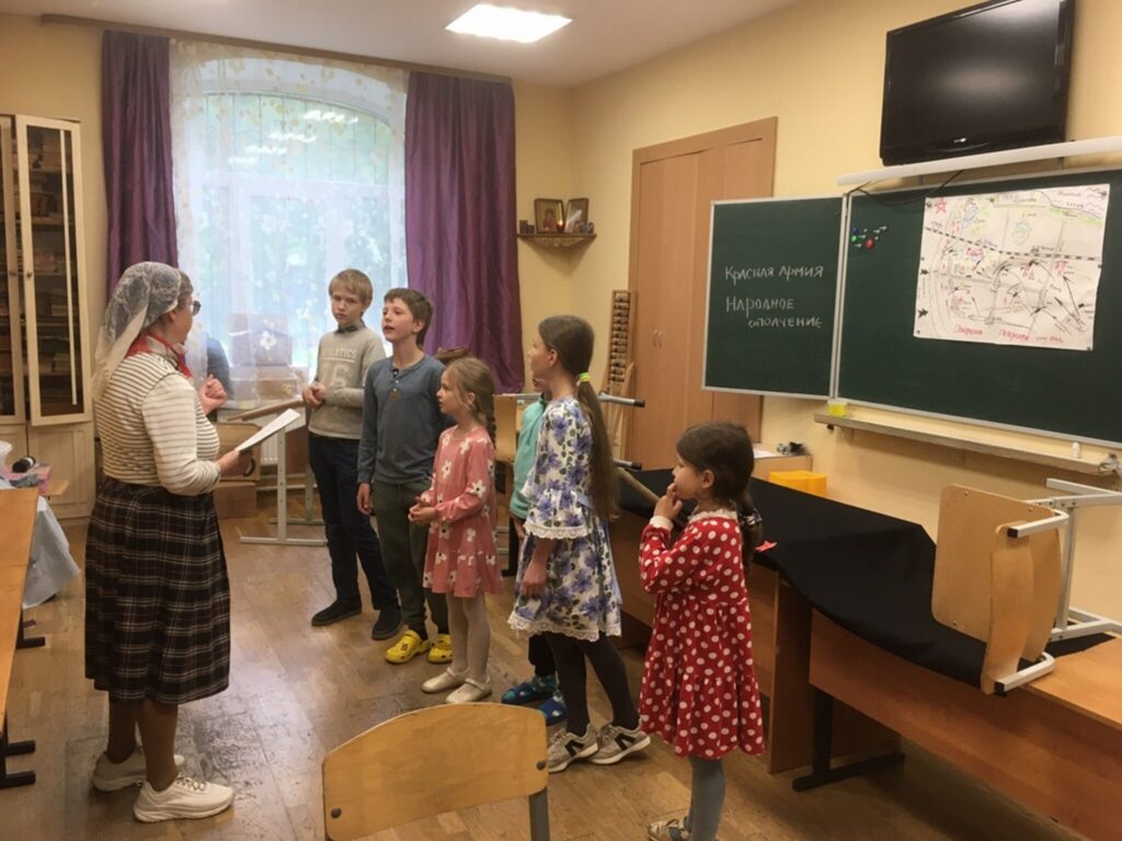 На последнем занятии в воскресной школе имени святого цесаревича Алексия при Петропавловском соборе Петергофа, 25 мая, по сложившейся за несколько лет традиции прошла игра по станциям. В этом году она была посвящена 80-летию Победы в Великой Отечественной войне.