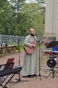 В заключение концерта о. Алексий исполнил всеми любимую песню, ставшую своеобразным гимном белого Троицкого храма – «Белый храм на горе». Соло на электрогитаре – Александр Ганихин.