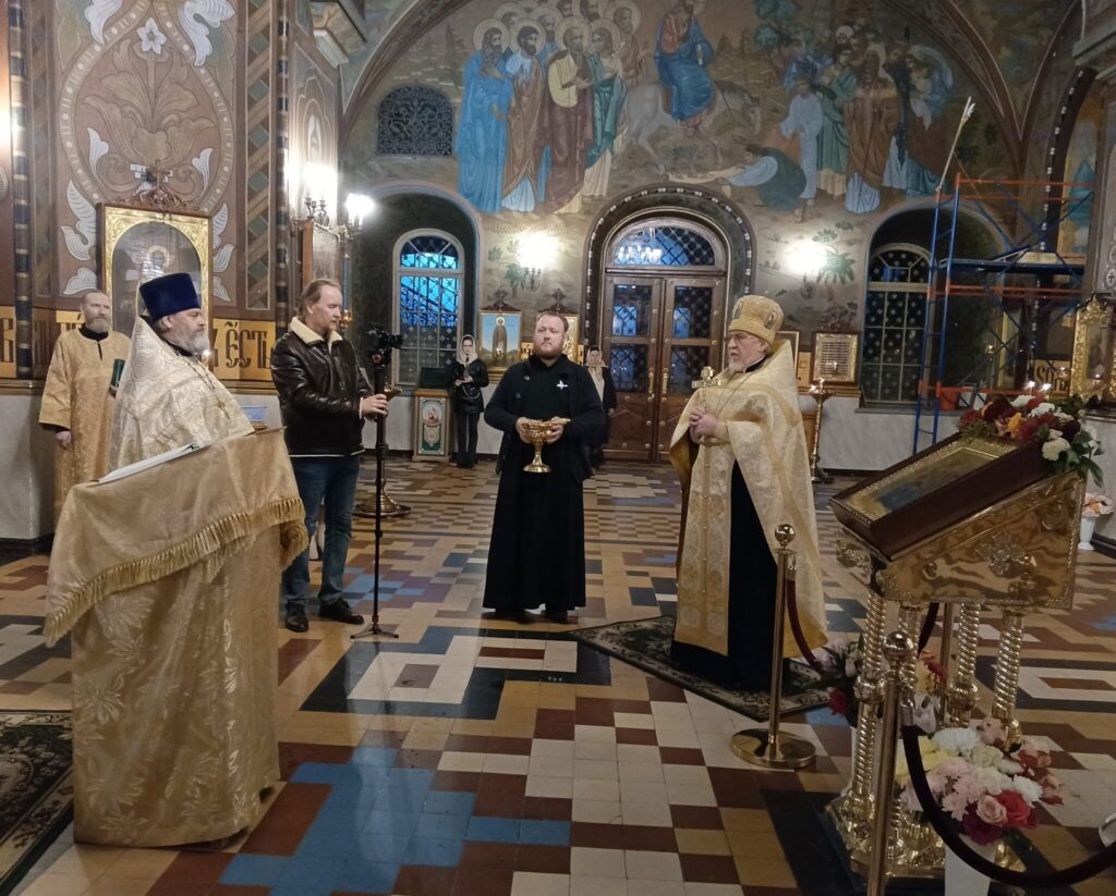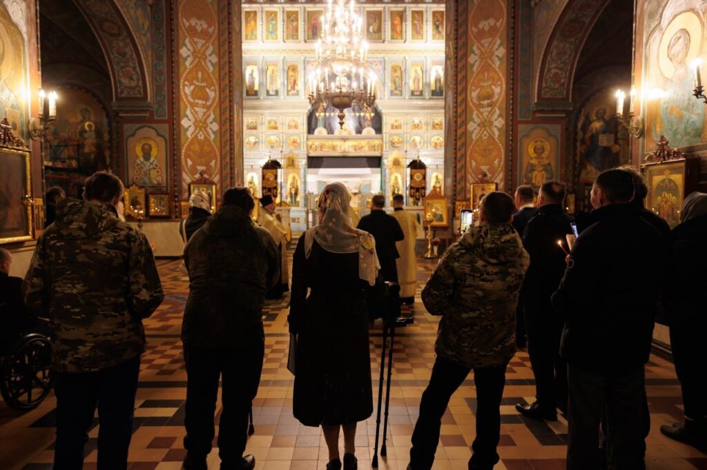 Затем, обращаясь к раненым бойцам, протоиерей Михаил сказал: «Дорогие братья, сестры! Сегодня в нашем соборе вместе с нами молятся защитники нашего Отечества. Они стали оплотом на границах наступающего зла, для того чтобы мы здесь жили спокойно. “Нет больше той любви, как если кто положит душу свою за друзей своих” (Ин. 15:13) – говорит Священное Писание.