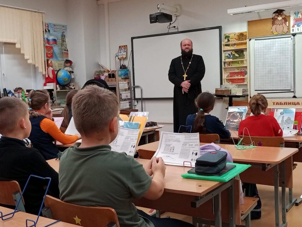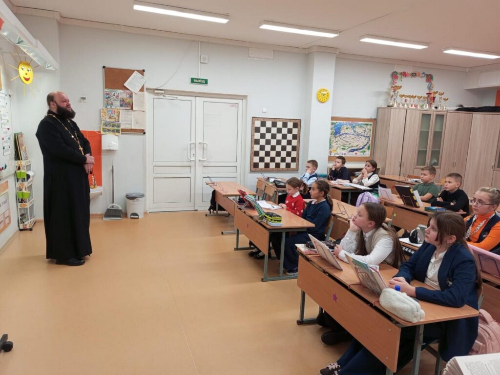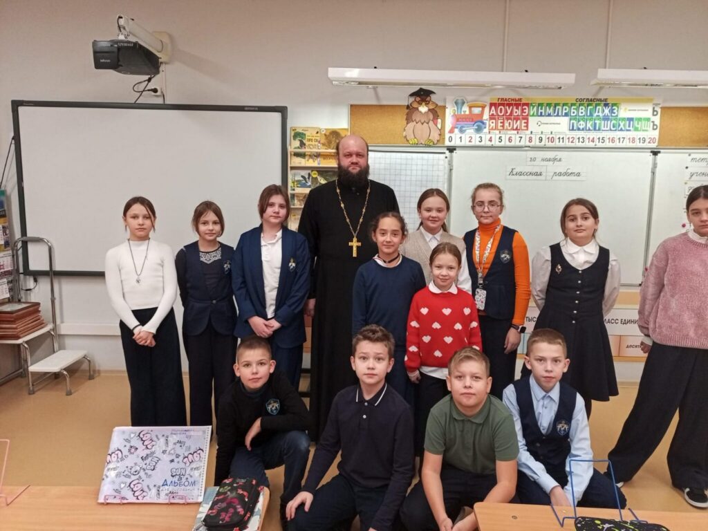 В четверг 24-й седмицы по Пятидесятнице, 20 ноября, иерей Алексей Рагин, настоятель храма Святой Троицы на Собственном проспекте, провел урок по Основам православной культуры в четвертом классе подшефной школы №319.