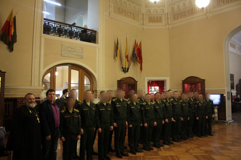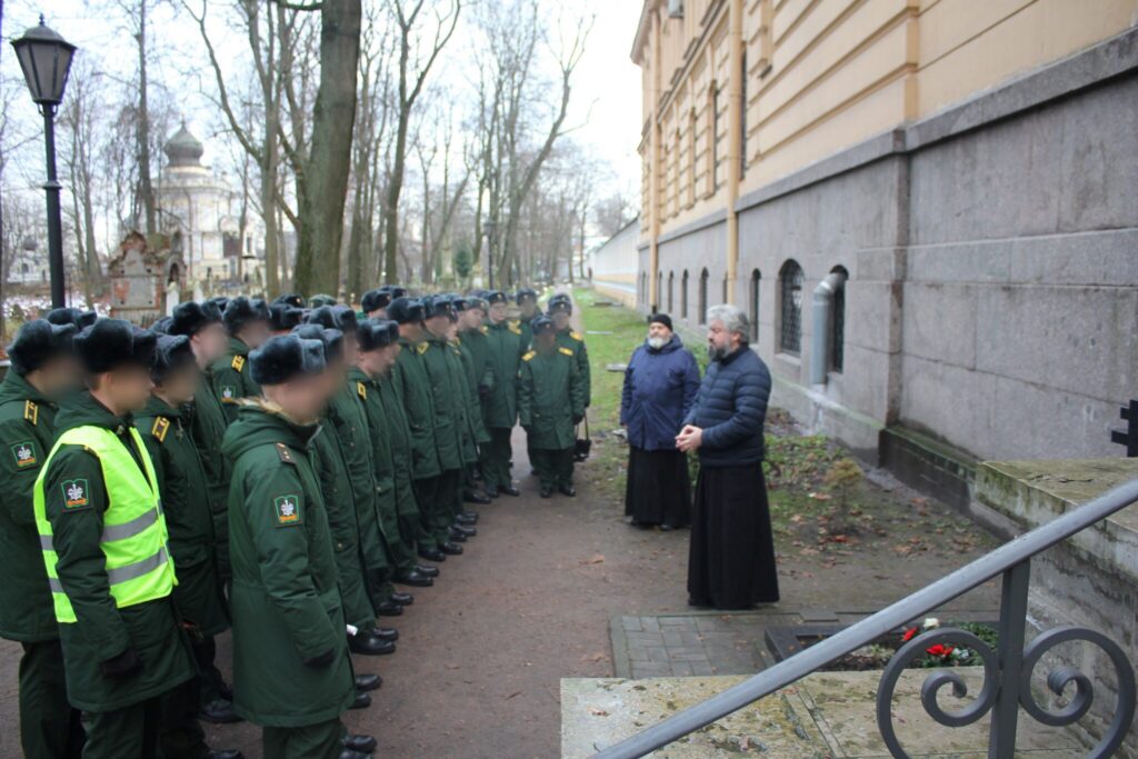 По окончании службы иерей Владимир Тарасов обратил внимание курсантов на то, что именно Вера Православная была тем источником, из которого генералиссимус черпал силы. На протяжении истории нашего государства и другие выдающиеся сыны нашего Отечества не только видели в Православии источник своих духовных сил, но и понимали, что именно Вера Православная является той основой, без которой немыслимо само существование Святой Руси. Поэтому и защищали русские земли не только от набегов ордынских ханов, но и от нападений шведов и ливонских рыцарей. Таким был святой благоверный великий князь Александр Невский, в честь которого и назвали маленького Сашу Суворова. И благоверный князь Довмонт (во святом крещении Тимофей), женатый на внучке Александра Невского. На протяжении 33-х лет он управлял Псковом, успешно отражая нападки немцев и литовцев. И генералиссимус и благоверные князья были глубоко верующими православными христианами и искали в своей жизни прежде всего воли Божией.