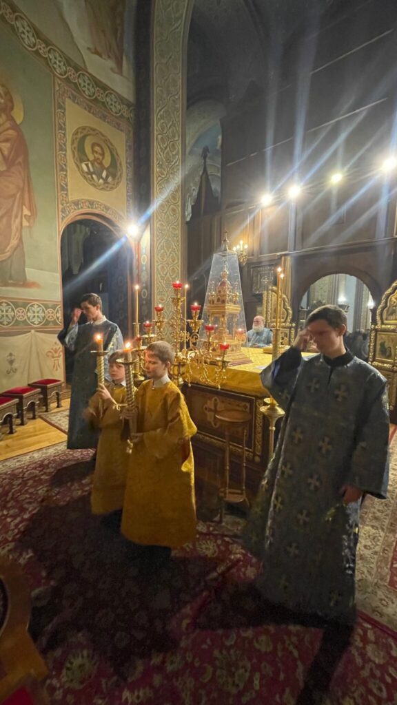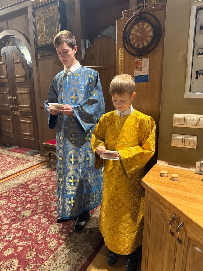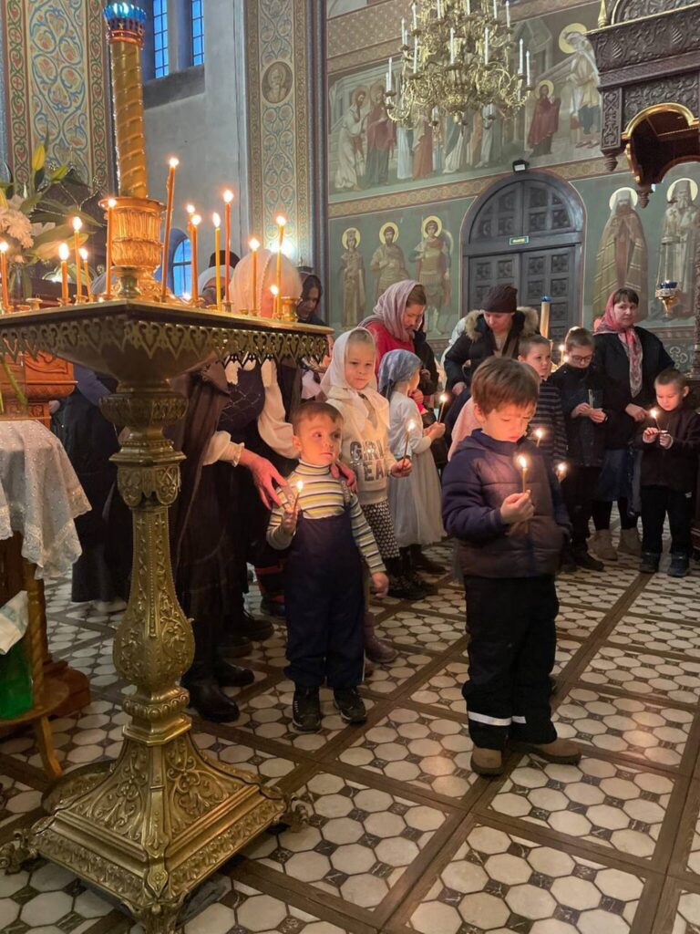 Большинство юных молящихся причастились Святых Христовых Таин, а само богослужение прошло с большим воодушевлением. Для самых младших ребят преподаватель воскресной школы Дмитрий Тулин давал краткие пояснение по ходу службы.