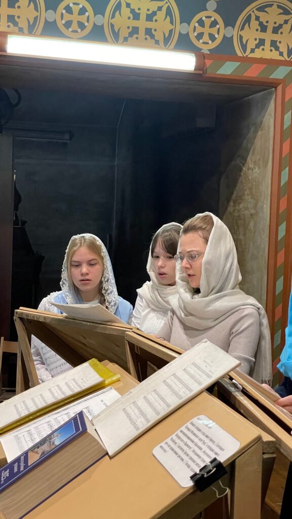Песнопения литургии исполнил молодежный приходской хор под управлением Таисии Ивановны Державиной. Стоит отметить, что хор совсем молодой, ведь создан он был только в феврале этого года!
