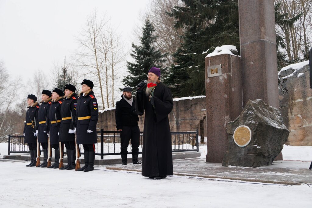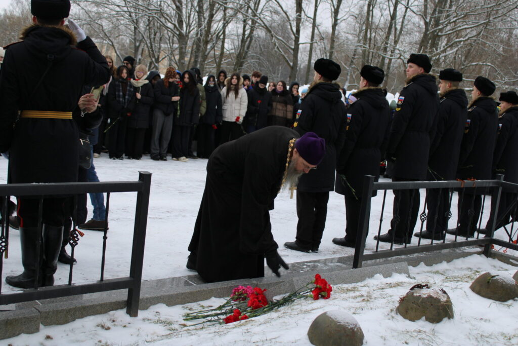 В день, освященный благодатью Крещения Господня, на мемориале «Приморский» прошел торжественно-траурный митинг, посвященный 82-й годовщине освобождения Петергофа от немецко-фашистских захватчиков. В памятном мероприятии приняли участие ветераны войн и труда, жители блокадного Ленинграда и Петергофа, депутаты, курсанты двух высших военных училищ, кадеты, старшеклассники всех школ города, активисты общественных организаций – всего около двухсот человек.