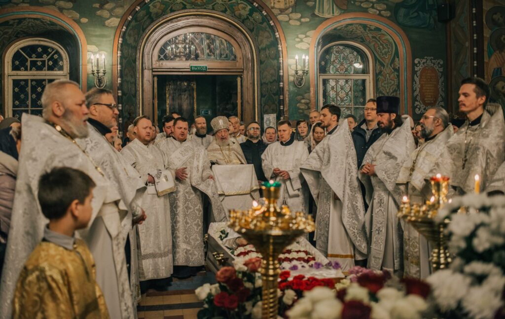 В день отдания праздника Крещения Господня и памяти равноапостольной Нины, 27 января, в Петропавловском соборе Петергофа Божественную литургию возглавил клирик собора протоиерей Георгий Лаврушин, в сослужении почетного благочинного Выборгского округа митрофорного протоиерея Александра Будникова, клириков собора и храмов Петродворцового округа и других благочиний Санкт-Петербурга. По окончании литургии прошло отпевание протоиерея Владимира Васильевича Чорнобая (16.02.1957–24.01.2026). Отпевание возглавил протоиерей Александр Будников. По благословению ректора Санкт-Петербургской Духовной Академии епископа Петергофского Силуана в чинопоследовании принял участие иеромонах Геннадий Поляков, а также помощник благочинного Царскосельского округа иерей Илья Арзейкин, сын о. Владимира иерей Петр Чорнобай. Всего в отпевании приняли участие двенадцать священников и пять диаконов.