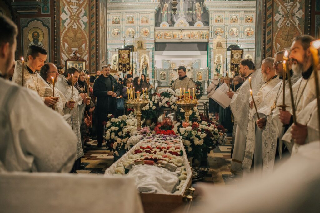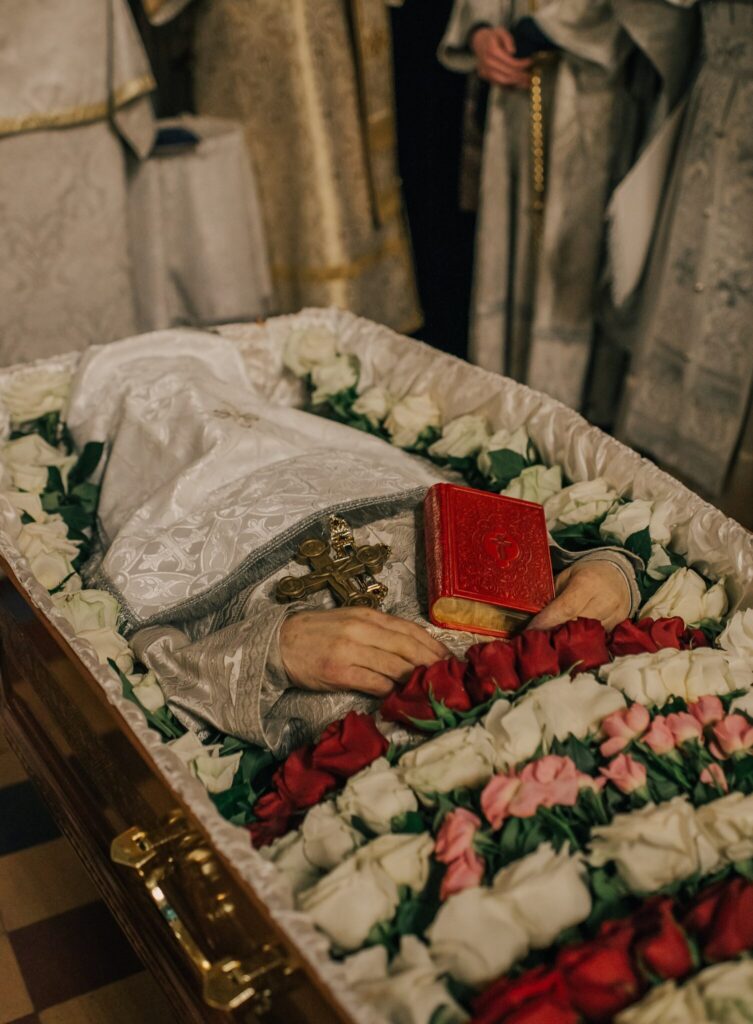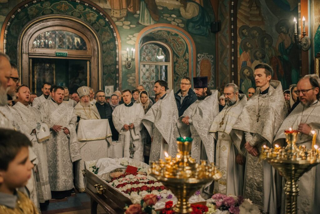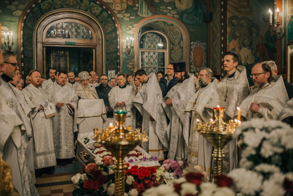 Чин отпевания священников сильно отличается от чина отпевания мирян. Воздавая честь служителю Таин Божиих, помимо Апостола и Евангелия, положенных при отпевании мирских людей, над почившим иереем читаются еще четыре Апостола и четыре Евангелия. Апостольское и Евангельское слово прерывается пением возвышенных антифонов. В молитвах, произносимых во время отпевания, изливается любовь к почившему и звучит мольба к Владыке об упокоении избранника Божия.