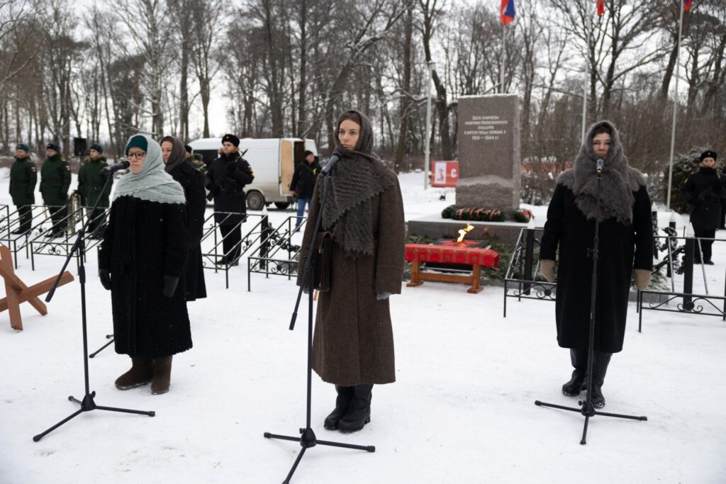 В церемонии возложения венков участвовали глава администрации Петродворцового района Александр Якушев и его заместители, депутат Заксобрания Михаил Барышников, начальник Военно-морского политехнического института контр-адмирал Андрей Клименко, заместитель начальника ВМПИ по военно-политической работе капитан 1-го ранга Вячеслав Жиляков, и заместитель начальника ВМА им. Адмирала Флота Советского Союза Н. Г. Кузнецова по военно-политической работе капитан 1-го ранга Геннадий Прохоров, главы муниципальных образований Петергофа, Ломоносова и Стрельны, ветераны войн и труда, жители блокадного Ленинграда и Петродворцового района, депутаты, представители предприятий района, правоохранительных органов, руководство и курсанты военных образовательных учреждений и воинских частей, офицеры и кадеты, старшеклассники школ района, юнармейцы – члены военно-патриотического клуба «Юнта», а также участники местного отделения Общероссийского общественно-государственного движения детей и молодежи «Движение первых». Несмотря на сильный мороз, более четырехсот человек пришли почтить память погибших.