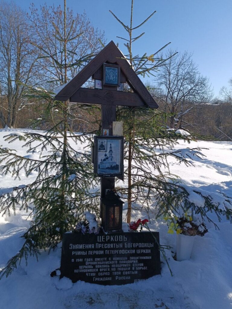 По уже сложившейся традиции, молебен о здравии молящихся, а затем заупокойную литию о рабе Божием Симеоне и его родителях, Стефане и Елисавете, отслужил иерей Петр Чорнобай, сын почившего 24 января 2026 года клирика Петропавловского собора Петергофа протоиерея Владимира Чорнобая. Последние пять лет приход Знаменской церкви возглавлял о. Владимир. Следуя живой преемственности служения Господу, о. Петр был назначен настоятелем храма иконы Божией Матери «Знамение», ожидающей своего воссоздания. На литии также помянули всех воинов, жизнь свою положивших на этой земле во время обороны Ленинграда. На месте, где когда-то стояла Знаменская церковь лейб-гвардии Конно-Гренадерского полка, проходил рубеж обороны Ораниенбаумского плацдарма. Сейчас православные жители Петергофа и окрестностей возносят молитвы о воссоздании этой церкви, которая была разрушена в годы войны. Молились также и о упокоении души о. Владимира, 40 дней со дня кончины которого будет 4 марта.