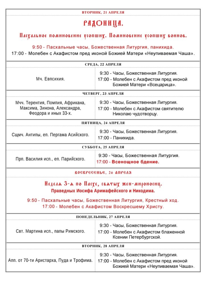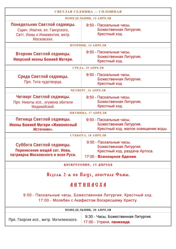 Идет загрузка ...- 12 апреля 202630 марта 2026 (по ст.ст.)ВоскресеньеНеделя 0-я по ПасхеПреподобный Иоанн Лествичник, Синайский, игуменАпостолы от 70-ти Сосфен, Аполлос, Кифа, Кесарь и ЕпафродитСвятитель Софроний, епископ ИркутскийПророк Иоад, человек БожийСвятая Еввула НикомидийскаяПреподобный Иоанн Безмолвник (Молчальник), Савваит, епископПреподобный Зосима Сиракузский, епископАпостол от 70-ти Епафродит Адриакский, сподвижник ап. Павла, епископСвященномученик Захария Коринфский, епископАпостол от 70-ти Кесарь Диррахийский, епископАпостол от 70-ти Кифа Иконийский (Колофонский), епископАпостол от 70-ти Сосфен Колофонский, епископСвятитель Гавриил (Банулеско-Бодони) митрополит Кишиневский